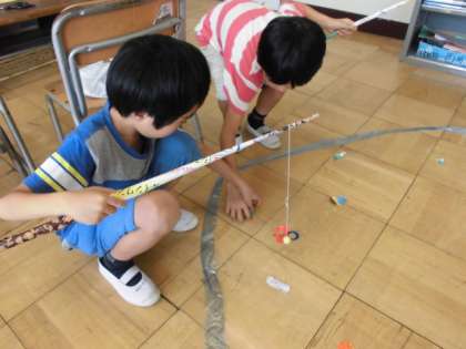 3年生以上の子は宿泊学習に出かけて、学校にいるのは2年生だけの二日間。ちょっぴり寂しかったけど、ダンスの練習、お絵かき、魚釣りなど、二人で仲良くがんばりました。