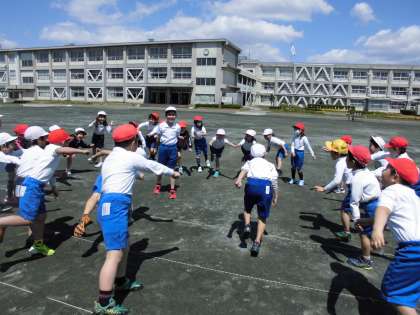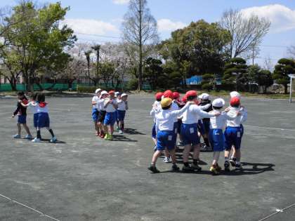 体育の体ほぐしの運動です。みんなの仲を深めるために、力を合わせました。楽しい1時間でした。
