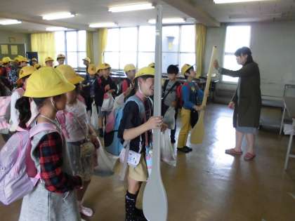 春の遠足の様子です。南部調理場といちい信金スポーツセンターに行きました。大きなしゃもじなどがあって、新しい発見がたくさんありました。