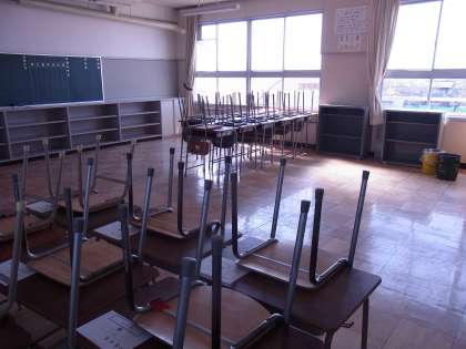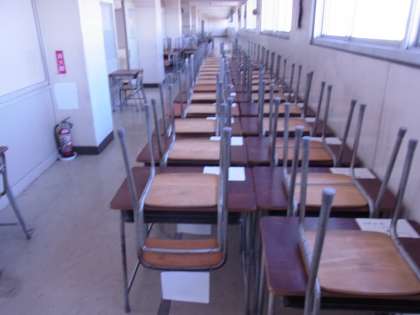 各教室では、教室移動の準備として、机やいすを大きさごとに仕分けしました。