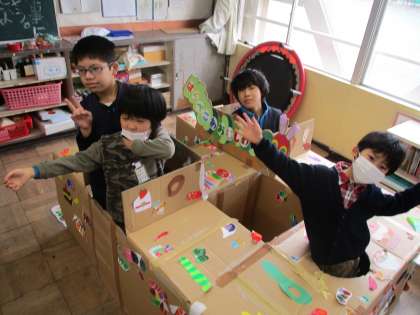 一生懸命作ってきた作品を「手をつなぐ子らの教育展」で発表することができました。どの子も力作!「あおむし迷路」も大好評でしたね。ダンスもとっても上手になりました。1年間で本当に色々できるようになりましたね!