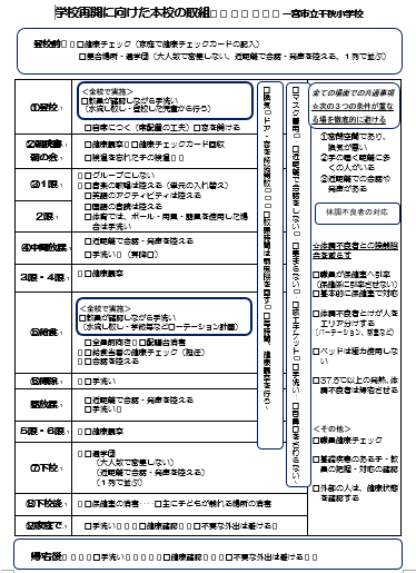 ※ 対策の詳細については、千秋小HP「新型コロナウイルス関連」のボタンをクリックしてご覧下さい。