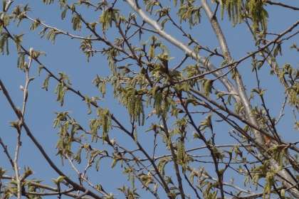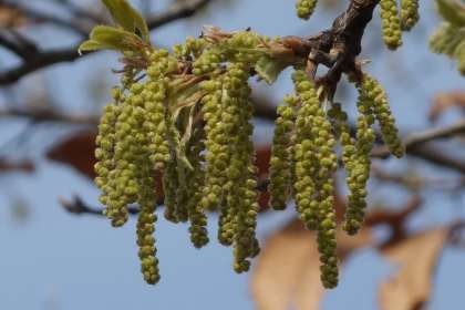 クヌギの花が満開です。この花がやがて実になり「ドングリ」になります。
