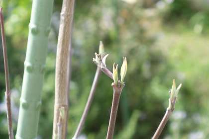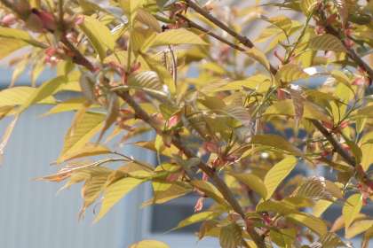 千秋小の花壇の樹木が一斉に芽吹きました。