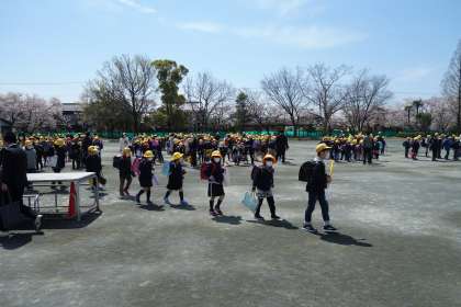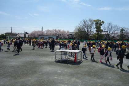 通学団会の教室からは、「密集」を防ぐために、4段階の時間差で教室を出しました。