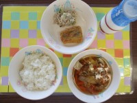 ピタパン、牛乳、夏野菜のクリームスープ、ポークチャップ