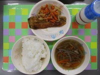 ごはん、牛乳、ご汁、とうふのソフト焼き大豆そぼろあん