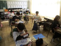 体育では、「体つくり運動」をしています。今日は、チームに分かれてカラーコーン倒しと戻しをしました。みんな夢中になって、走り回りました。その後、縦にも横にもカラーコーンを跳びました。