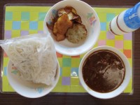 今日の給食は、中華めん、牛乳、とんこつしょうゆラーメン、揚げギョーザ、切干だいこんの中華和えでした。今日のギョーザは、油で揚げて調理をしてありますが、焼いたり蒸したりする場合もあります。調理法を変えることで味や食感に違いがでるだけでなく、エネルギーにも違いがでます。必要に応じて調理法を変えてみましょう。