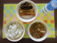 今日の給食は、ごはん、牛乳、スーミータン、あいちのシャキシャキすどりでした。あいちのシャキシャキすどりは、昨年度の応募献立です。れんこんなどの野菜と、鶏肉を甘酢で味付けをしたものでした。れんこんのシャキシャキした食感と鶏肉が決めてになっていました。
