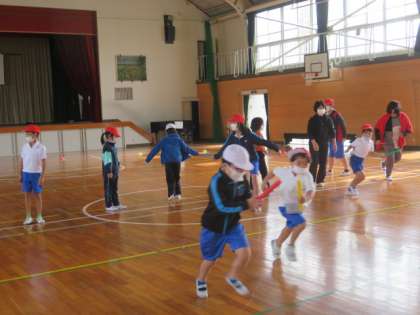 体育の授業でリレーをしました。最初は戸惑っていたバトンの受け渡しも練習を重ねていくと、とても上手になりました。最後はみんなで楽しくリレーができたので、今度は広い運動場でリレーに挑戦してみようね。