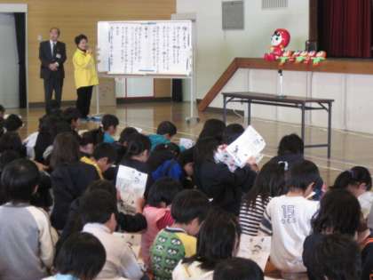 2時間目に、1〜3年生が屋運に集まり、人権についてのお話と「しらんぷり」というアニメの映画を見ました。友だちにいやなことを言ったり、いじめたりしないようにし、みんな仲良くし、友だちと楽しい学校生活を送ろうという気持ちが高まりました。
