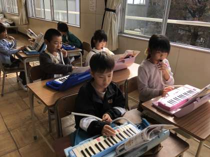 鍵盤ハーモニカの練習をしました。