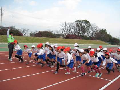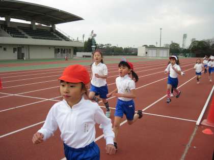 県営グランドのトラック、1周半は長いけど、がんばりました。