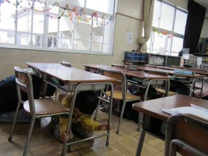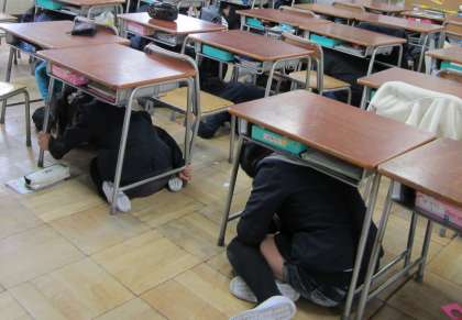 地震が起きたという想定で避難訓練を実施しました。時間は3時間目の通学班集会のときです。いつも過ごしている自分の教室ではない教室、指導者も担任ではなく、通学班の担当という慣れない環境でしたが、子どもたちはとても静かに、素早く身を守る行動がとれました。冬休み中、ご家庭でも緊急時の避難について、話し合っていただくとよいと思います。