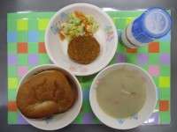 4月11日 給食スタート 公開日 2012/04/11 更新日 2012/04/11 本日の給食 今日から給食がスタートしました。今日のメニューは、クロワッサン、牛乳、春キャベツのスープ煮、ハンバーグのデミグラスソース、お祝いデザート。お子様の評判はどうでしたか?