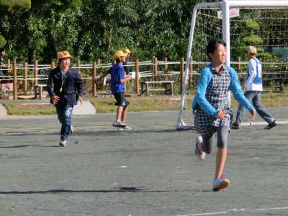 今日は1〜5年生が遠足で不在のため、校庭は6年生が貸し切り状態です。