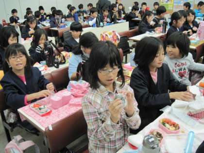 エコパルなごやから、名古屋のまちなみを見学しながらでんきの科学館の地下に移動し、お弁当をいただきました。