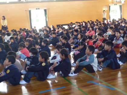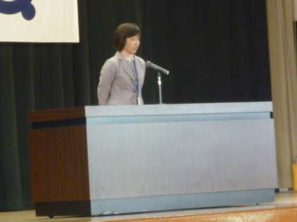 週番長から、今週の週目標「明るいあいさつを交わそう」についての話がありました。その後、原校長から、26日の模範授業を見て、「話を聞くこと」と「自分の考えをノートに書くこと」の大切さについて話をしました。「あいさつ」「聞く」「書く」は、生活する上での基礎・基本です。全職員で取り組んでいきます。
