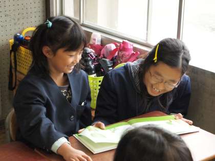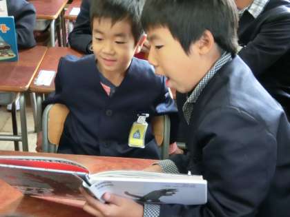 1年生のペアの子に本を読みました。ペアの子の近くに寄り添って読んでいる姿を見て、お兄さんお姉さんとして頑張っていると感じました。