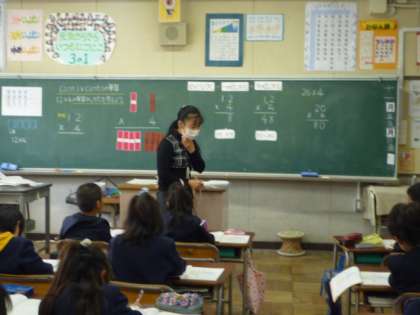 3年生の算数「2けた×1けたの筆算」の授業の様子です。