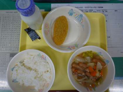 11月8日 本日の給食 公開日 2012/11/08 更新日 2012/11/08 本日の給食 今日のメニューは、ご飯、牛乳、ポトフ、コーンフライソースでした。コーンフライにはトウモロコシがいっぱい。おいしくいただきました。