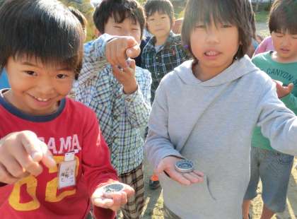 理科の時間に、方位磁針の使い方を覚えました。運動場に出て、東西南北を確かめました。「てのひらの上で水平にするんだよ。」「色のついた針の先を北に合わせるんだよ。」「北には、校舎がある!」「南にはメタセコイヤが見えるね。」校庭のまわりにあるものを方位を考えながら、さがしました。