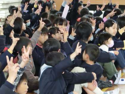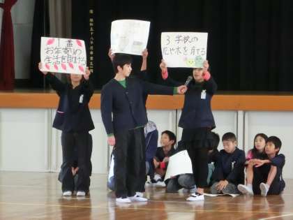 来週の火曜日、水曜日と赤い羽根共同募金の活動を行うので、お知らせを代表委員会で行いました。クイズなどで、赤い羽根共同募金のことを知りながら、集会を過ごすことができました。