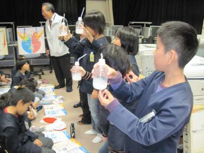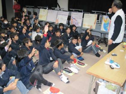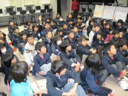 クイズをしたり、映像による説明を聞いたりして、地球温暖化について知りました。