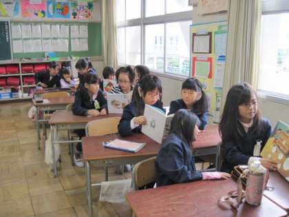 4年生が読み聞かせをしている様子がたくさん見られ、立派でした。
