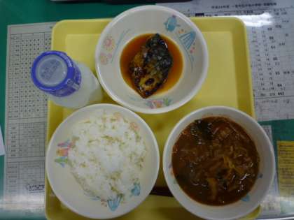 11月12日 本日の給食 公開日 2012/11/12 更新日 2012/11/12 本日の給食 今日のメニューは、ご飯、牛乳、味噌汁、さばの照り焼きでした。さばの照り焼きは味がしみ込んでいて、とてもおいしかったです。