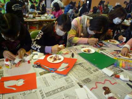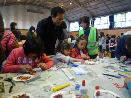 種を丁寧に一つずつボンドでくっつけていく作業。子どもたちはすごく集中していました。