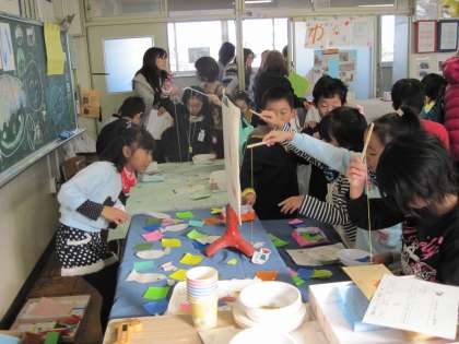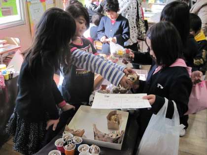 2年生は秋まつりを行いました。生活科「うごくうごくおもちゃ」の学習を生かして、みんなで楽しく遊ぶにはどうしたらよいかを話し合いました。たくさんのお客さんに喜んでいただくために、仲間と協力して準備を一生懸命がんばりました。美味しそうな食べ物や楽しいゲームのお店があり、買い物袋がいっぱいになりました。子どもたちは店員、お客とそれぞれを経験し、楽しさだけでなく大変さも学ぶことができました。材料集め、品物作りなどたくさんのご協力ありがとうございました。またお客さんからの温かい言葉が、子どもたちのエネルギーになりました。今後もよろしくお願いします。