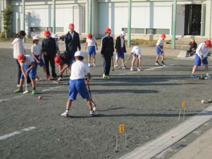 風がほとんどなく,少しぽかぽかとした陽気の中,外で行っているクラブは,元気よく活動していました。