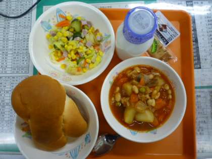 11月20日 本日の給食 公開日 2012/11/20 更新日 2012/11/20 本日の給食 今日のメニューは、クロスロールパン、牛乳、ポークビーンズ、ハムサラダ、チョコクリームでした。久しぶりのパン給食。おいしくいただきました。