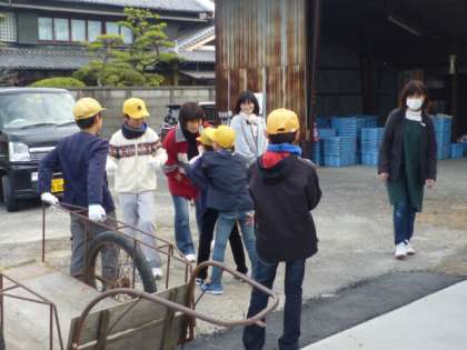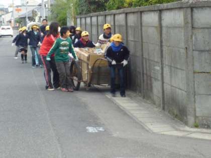 4年生が環境学習の一環で、地域の資源回収に参加しました。佐野地区の児童は新しい資源ステーションまで運びました。