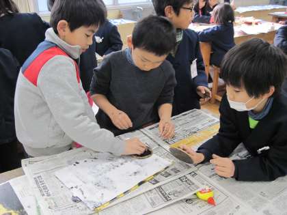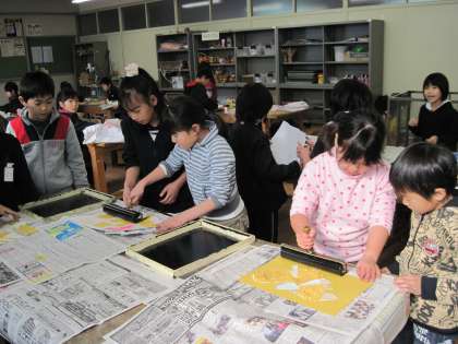 図画工作「うつしてみると」の学習で、初めて版画挑戦しました。