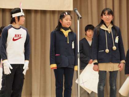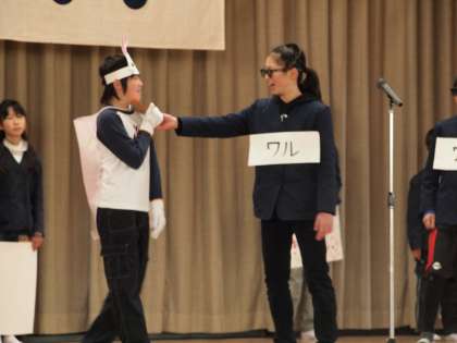 集会で飼育委員の発表がありました。うさぎのえさや目の色の変化などを○×クイズにして発表し、楽しくうさぎについて学べました。
