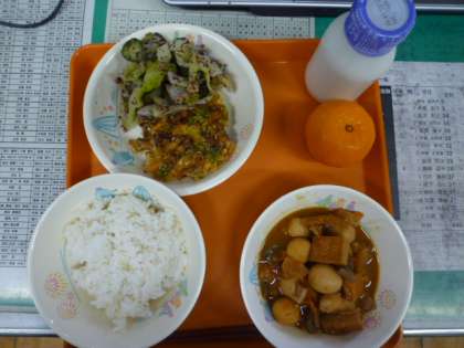 2月5日 本日の給食 公開日 2013/02/05 更新日 2013/02/05 本日の給食 今日のメニューは、麦ご飯、牛乳、味噌おでん、かきあげ、キャベツのしそあえ、ポンカンでした。味噌おでんは、味がしみ込んでいておいしかったです。