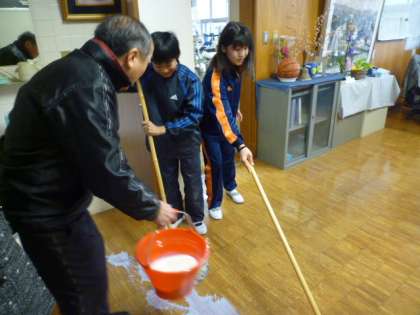 今日、油引きをしました。昼放課に、校長室、職員室をしました。きれいになりました。