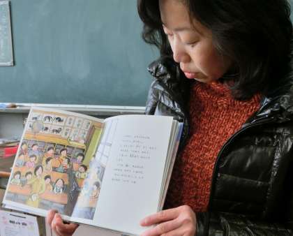 2月12日 3年 朝の読み聞かせをしてもらったよ。