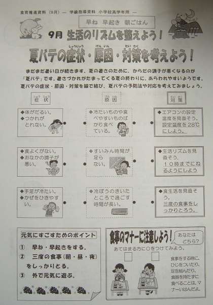運動会間近。朝読書の時間に、下のプリントを使って、食育指導をしました。