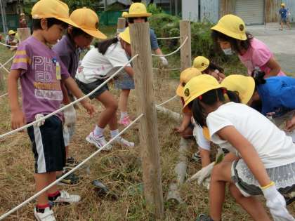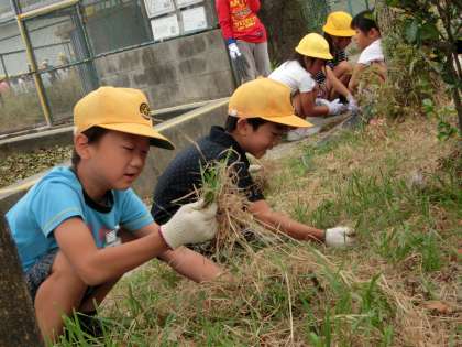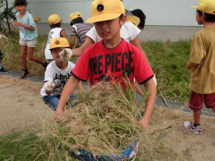 2年生は草取りです。一輪車で何往復もするほどたくさんの草を抜くことができました。がんばったね!ありがとう!