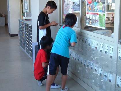 放課、職員室廊下を見たら、ベルマーク整理をしている男の子たちがいました。ありがとう。