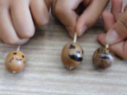 10月16日 1年 どんぐりごまをつくったよ。