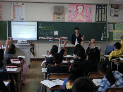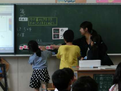 昨日の1組に続いて、今日は2組で算数の「かけ算」の研究授業がありました。