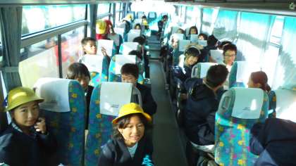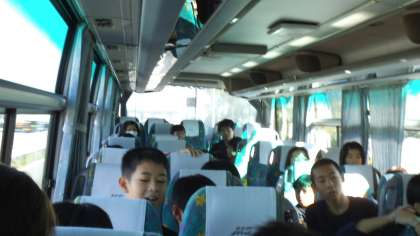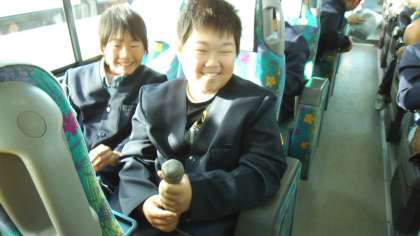 御在所SAで休憩後,みんなで元気にバスレクをしています。