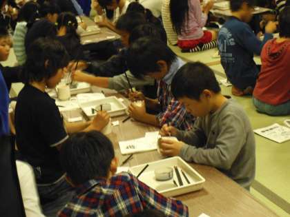 うまくできるかとドキドキしながら絵付けをしています。