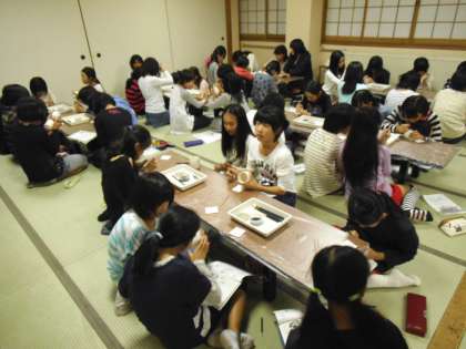 ホテルの中で清水焼の絵付け体験をしています。