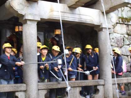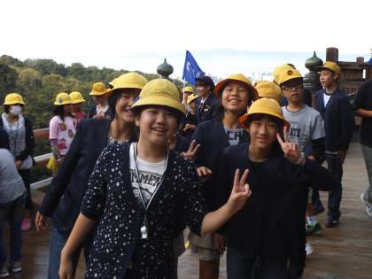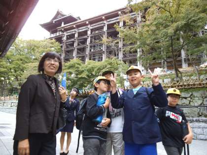 どの子も清水の舞台で景色を楽しみ,音羽の滝で水を飲んでいました。